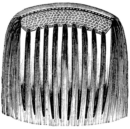 Several other ways of turning hair are adopted, but the principle is the same. Some use the “card” with the “nitting machine” attached. The teeth of the machine are allowed to be open or close, depending upon the coarse or fine quality of the hair, proceeding upon the principle that 40these “knobs,” or roots, will offer a slight resistance and be intercepted in their course. Others, again, employ a row of needles, closely set together, with the same object in view, and producing a like result.