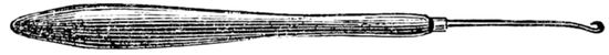 The shortest and finest hair is employed for gentlemen’s wigs, fringes, “Sevigny” curls, and similar purposes. There is frequently a natural inclination to curl in hair of this description, but when coarse and strong, it is best not to attempt to force it. To make the curl take one of the pieces of fine hair, and thoroughly wet it. Rub the roots with the palm of the hand as before, so as to cause it to “felt” together. Have ready a smooth brass tool, five or six inches long, and in shape resembling the end of a steel used for sharpening knives. With this (and the thumb) press the hair between, giving the hair, at the same time, two or three turns round the tool; draw away the instrument; hold the curl between the thumb and finger, and place it on an iron tray made for the purpose. Each curl is to be held in position by means of a small weight placed upon it, and there must be a “stop” in the centre of the tray to prevent the curl unwinding. The succeeding curl acts as a “stop” to its predecessor, and 30when the tray is full, it looks not unlike a dish of snails that has been prepared for some uncommon and remarkable feast. It is not possible to boil this hair, like that which is rolled upon “pipes” and securely fastened by means of pieces of string, therefore it must be steamed before it is baked. The steaming process can be done effectually in a small way with ordinary domestic utensils. Hair manufacturers would proceed somewhat differently, and necessarily so, because their work is extensive; but I am addressing myself to hairdressers whose requirements are on a greatly reduced scale. Take a sufficiently large saucepan, and put therein one of those three-legged iron rings upon which meat is placed when sent to the oven. Every good housewife will know what I mean. On this stand put the tray containing the crop hair, and surround the whole with water, taking care, however, that none enters the tray. Put the lid on the saucepan; boil for at least a quarter of an hour, and by this simple arrangement the hair will be sufficiently well prepared for the baking process. Take the tray containing the hair carefully out, and after allowing the steam to blow off, a certain amount of dryness will follow, when it can be baked in a cool oven, or in front of a good fire—the oven of course being preferable. When quite cold the weights are to be removed, each curled lock of hair put into a box or drawer till wanted, and, above all, it must be kept in a warm, dry apartment.