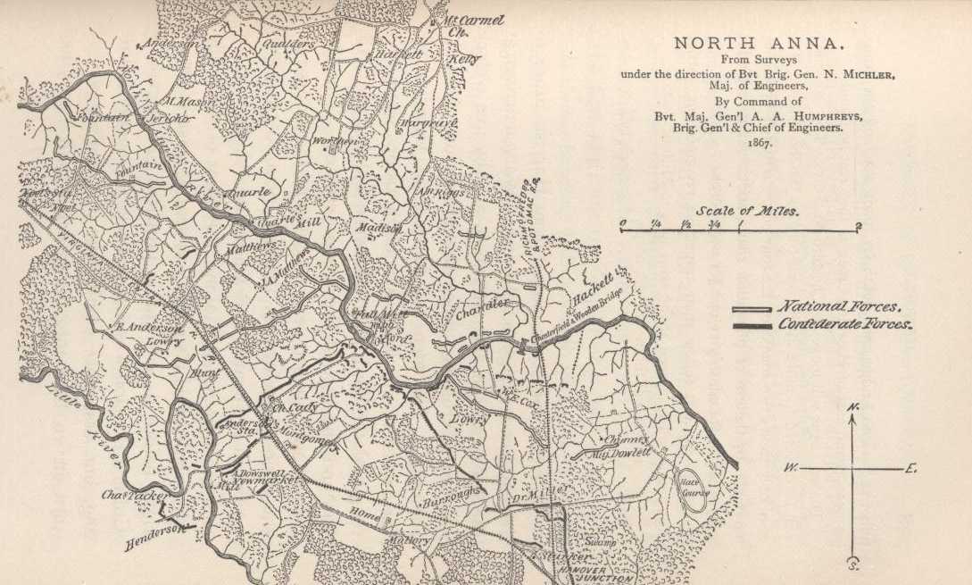 CHAPTER LIV. MOVEMENT BY THE LEFT FLANK—BATTLE OF NORTH ANNA—AN INCIDENT OF THE MARCH—MOVING ON RICHMOND—SOUTH OF THE PAMUNKEY—POSITION OF THE NATIONAL ARMY.