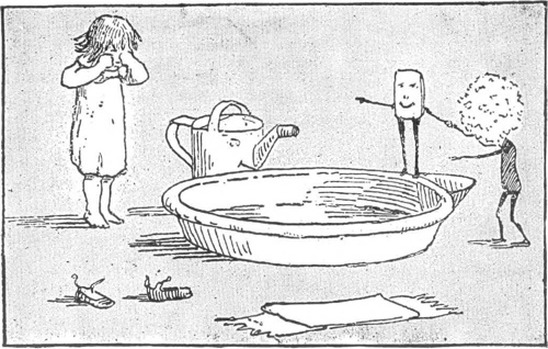 DOWN in an earth garden were some flowers all drooping and sad. Father Sun saw them, and calling his little children, the sunbeams, to him, said, “To-day, my little helpers, I need you to do some work for me. Go down to the big, round earth far below, and bring back to the sky country all the water dust that you can carry.”