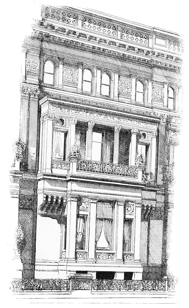 to its function and position, and none of it exquisite in modelling. It is also intelligible that he may have been dissatisfied with some parts even of his still more successful house at Fifth Avenue and Fifty-seventh Street, which, always a grateful object, has lately acquired an air of additional distinction from the eager architectural competition which has set in alongside of it, and the results of which give an air of unquestionable animation—the animation of excited controversy—to Fifty-seventh Street from Fifth to Sixth Avenue. This dissatisfaction, if the architect underwent it, was a wholesome discontent which we should have expected to see allayed by more thoroughly studied detail in Mr. Harney’s succeeding work. But it seems to have been a morbid sensitiveness to the defects of his work which led Mr. Harney to abandon altogether, and in despair, the practice of architectural design, and, when he had another commercial building to do, to erect in Wall Street an entirely ineffectual structure,{23} of which the architecture that one carries away with him consists in a crow-stepped gable, an irrelevant entablature appliqué which crosses the building half-way up, and windows covered with flat arches, the key-stones of which are “shored up” by the mullions; and, when he had another city house to do, to depute the design of it to some unknown carpenter who died before he was born, and to reproduce accurately in Madison Avenue a Vandam or Charlton Street house built out of due time, with a familiar “old New York” doorway, in the jambs of which quoins intercept sheaves of mouldings. This confession that a carpenter of 1825 was a better-trained designer than an educated architect of 1880 is very possibly creditable to the personal modesty of the latter; but Mr. Harney’s own earlier works sufficiently testify that it does not do him justice.