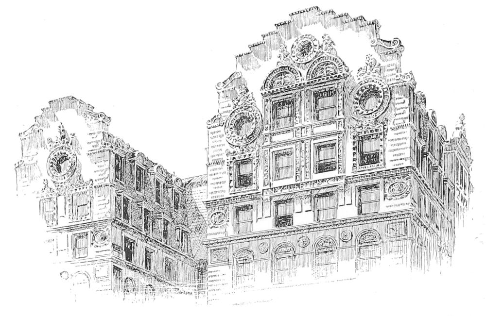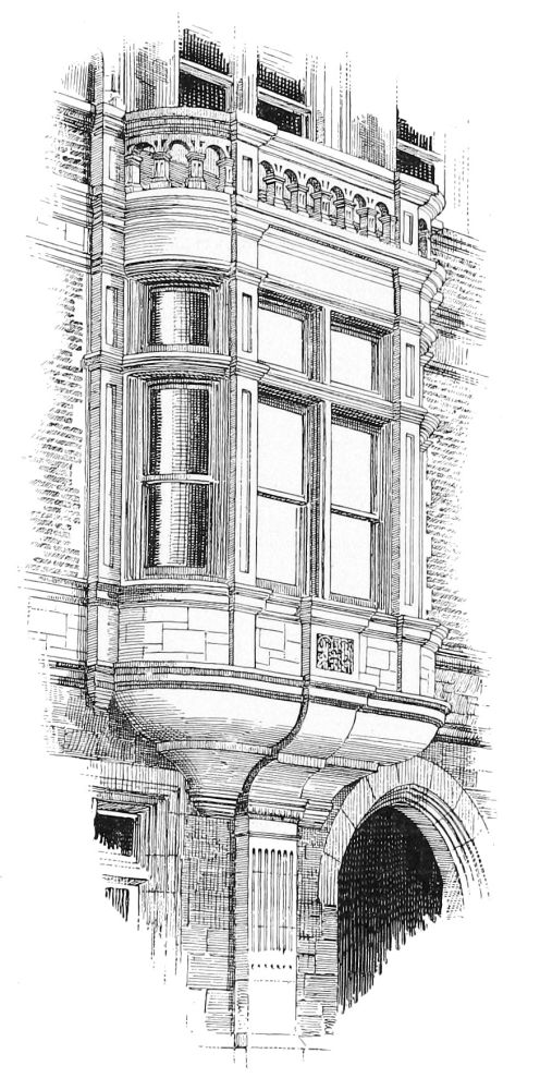 turret. It is a good lesson in architecture to find that the effect of a whole may be so much impaired by one of the most successful of the parts, and that even when “the thing” is really rich and rare, we may still be unsatisfied how it “got there.” Happily neither this shortcoming, nor shortcomings much graver, could prevent such a work as this from being an ornament to the city, and an honorable monument to its architect.