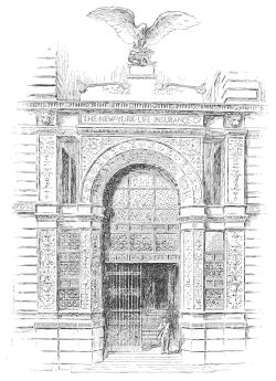of genius, but weak in his parts of speech, are the effects which the demand for aboriginality actually had upon the race of builders, whether they were content with that title, or without any sufficient provocation described themselves as architects. They undoubtedly attained{18} difference, and their works did not remind the travelled observer of any of the masterpieces of Europe. It is quite conceivable and not at all discreditable that the wild work of Broadway and of Fifth Avenue should have led architects of sensibility to cast many longing, lingering looks behind at the decorum of the Bowling Green and Washington Square, and to sigh for a return of the times when the common street architecture of New York was sober and respectable, even if it was conventional and stupid.