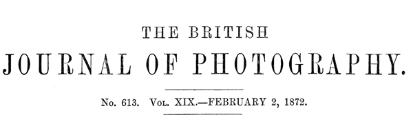 Title: The British Journal of Photography, No. 613, Vol. XIX, February 2, 1872