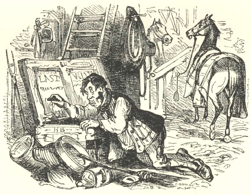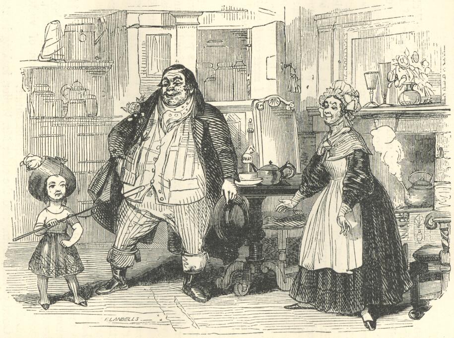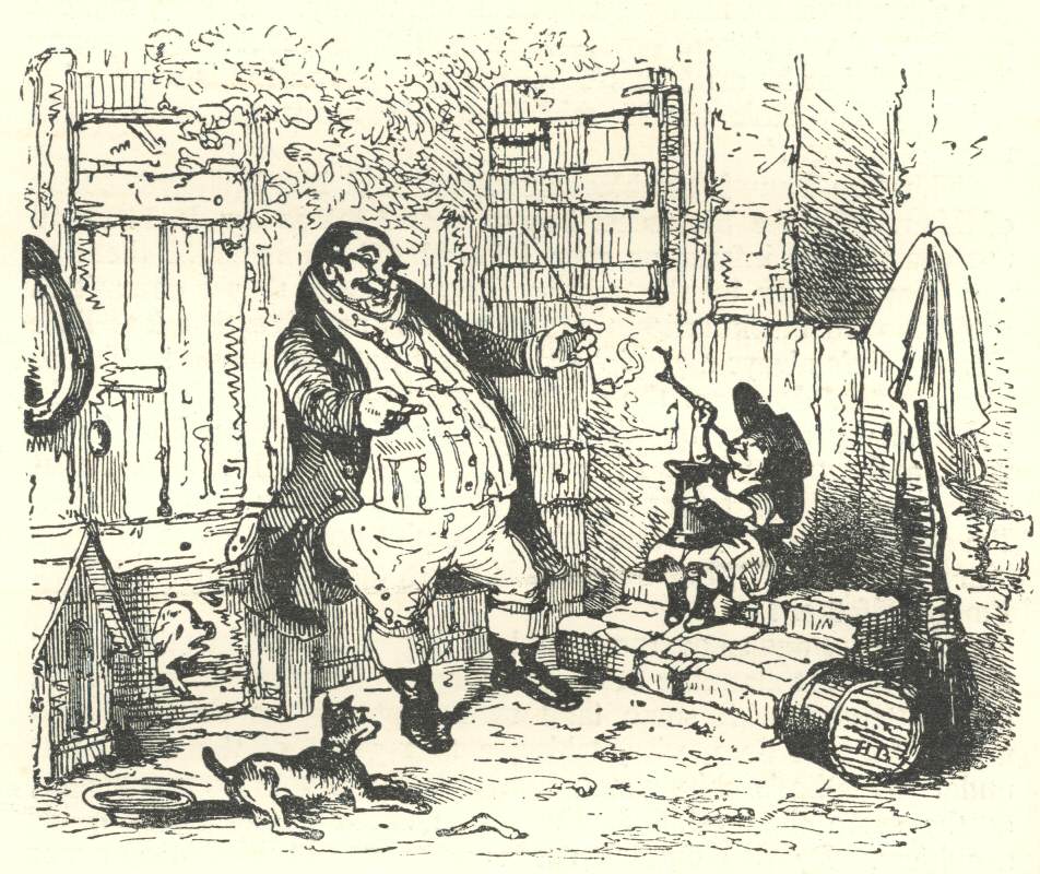 ‘No, Tony, not you,’ said Mr. Weller. ‘I hope it warn’t you, Tony. It must ha’ been that ’ere naughty little chap as comes sometimes out o’ the empty watch-box round the corner,—that same little chap as wos found standing on the table afore the looking-glass, pretending to shave himself vith a oyster-knife.’