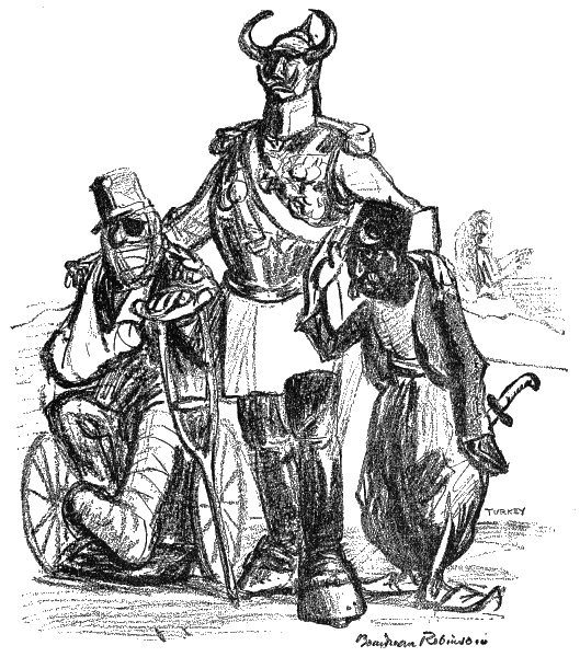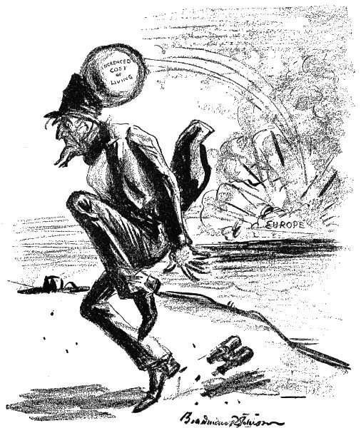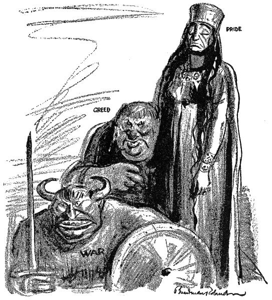 These drawings are selections from Cartoons published, for the most part, in a daily newspaper. They represent the emotions evoked by the news from day to day, and make no pretense to a philosophic viewpoint. They do seek to express, however, a deep conviction that Germany is chiefly to blame for the war.