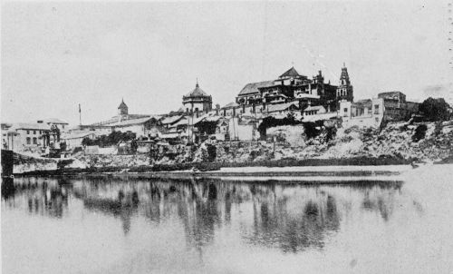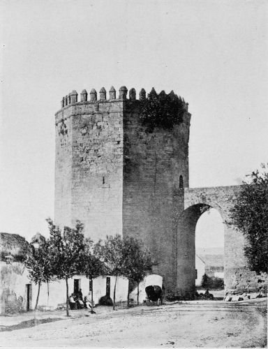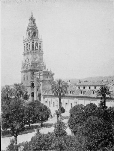 Toledo and Avila, both Moorish towns, display an austerity fascinating by reason of its very grimness. Cordova is beautiful by comparison, partly on account of its situation in a fertile district, and partly because its houses are white flower-decked, and cheerful in aspect. It is more voluptuous than these fortified towns of Castile. The climate is southern, the air softer, and the buildings are less stern in colouring and less{6} menacing in appearance. In Cordova, flowery courts invite you with a smile; in Toledo, frowning gates and barred doors forbid your entrance. Toledo reminds us that the Moors were warriors and conquerors, bent upon aggression and the extension of territory; in Cordova one thinks of the race as sages, artists, worshippers, poets, and lovers. The palm-trees planted by Abd-er-Rahman, ‘The Servant of the Merciful God,’ the tropical flowers and fruits, the mosque, and the fountains, give impress of the milder, pacific, quietly joyous life of the Moors. We recall the words of the wise ruler: ‘Beautiful palm-tree! thou art, like me, a stranger in this land; but thy roots find a friendly and a fertile soil, thy head rises into a genial atmosphere, and the balmy west breathes kindly among thy branches.’