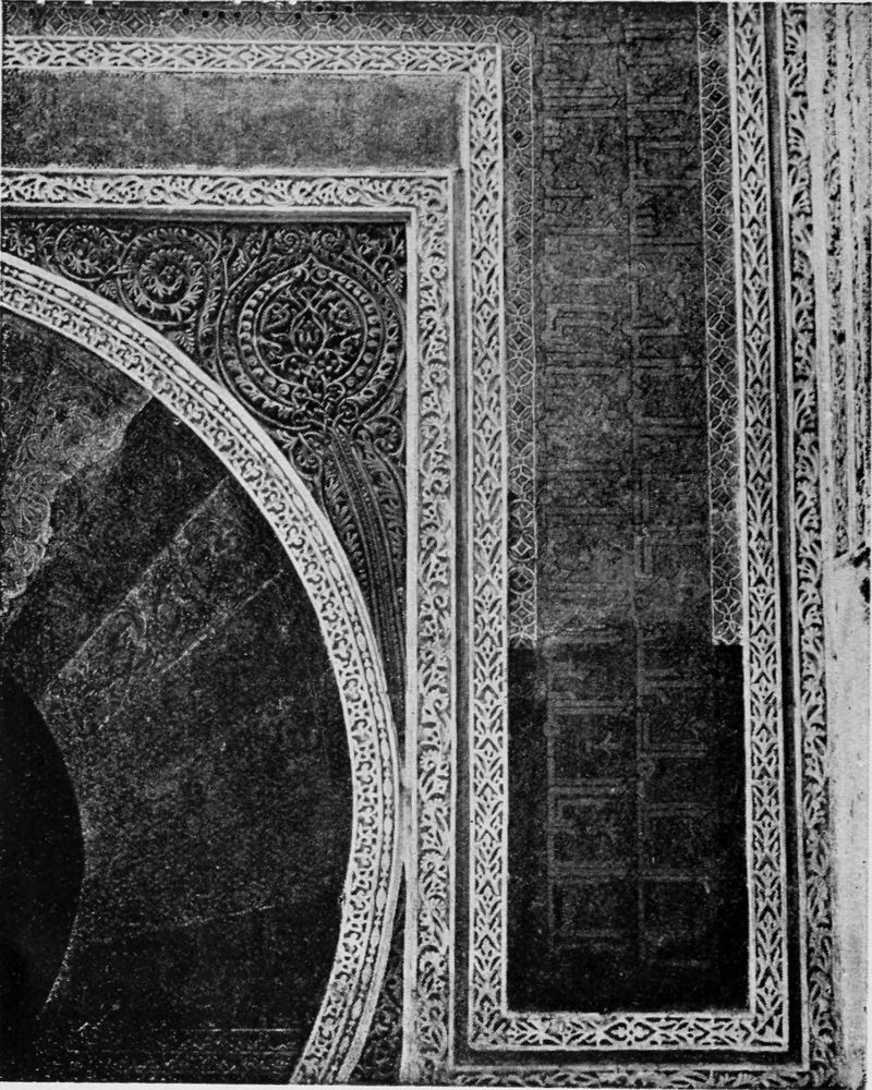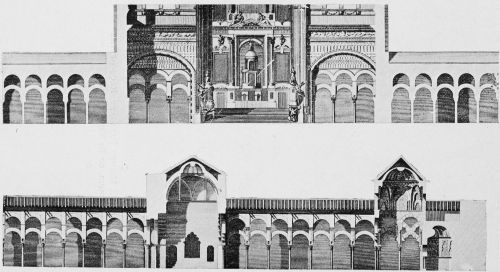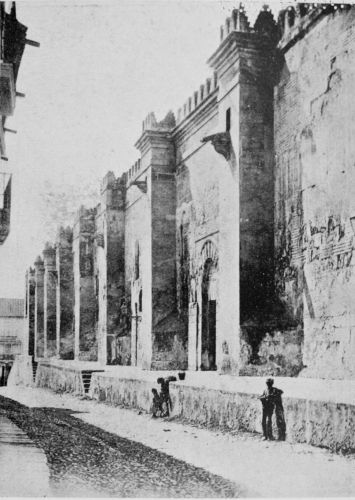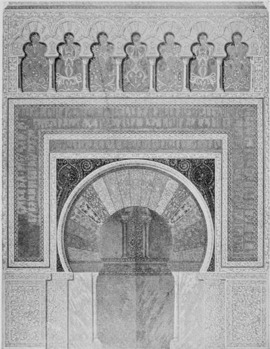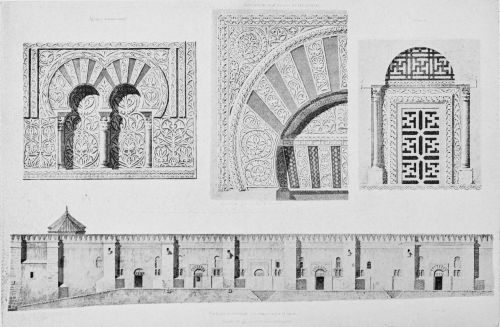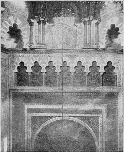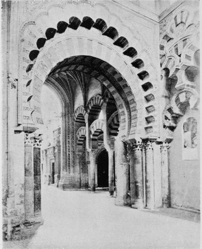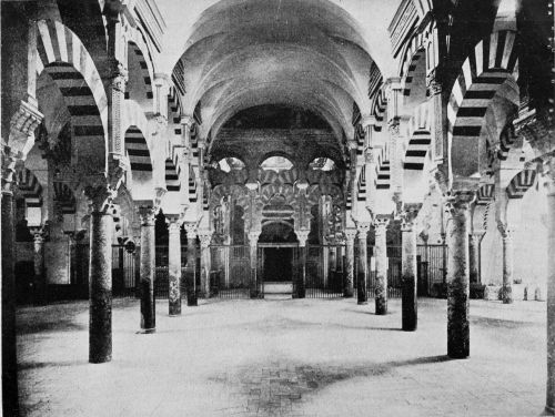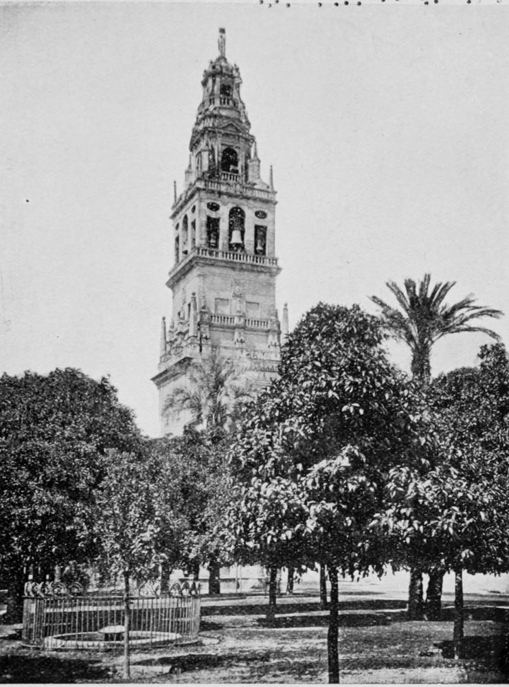 Tangible evidence of a superb civilisation surrounds us in Cordova. We see examples of early Moorish architecture brought to its highest artistic manifestation in the mosque. We listen in vain for the voices of teachers, the song of the singers and poets, and the call of the muezzin to devotion; but we tread in the footsteps of the long-vanished Moor, and read his story in the noble lines, chaste embellishments, and gorgeous details which his skilful hands produced.{13}