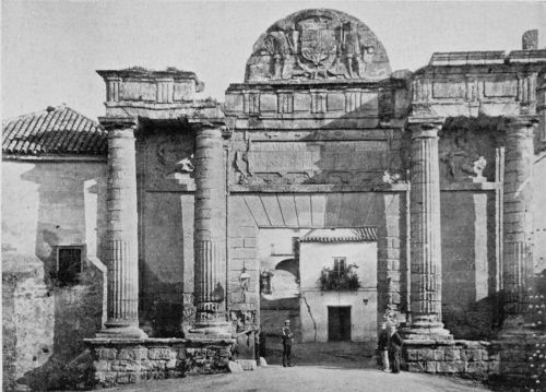 Beneath the rule of Rome Andalusia prospered. Roads, bridges, and aqueducts were constructed; cities were enlarged and founded, industries were developed, and the wealth of the country increased. This spell of peace and progress was broken by the conflict between Cæsar and Pompey, and Spain was the scene of some of their fiercest battles. With the decay of Roman greatness and valour, Bœtica was overrun by the hosts of the Goths from northern and eastern Europe. Like beasts of prey these hordes despoiled the Roman cities, shattering temple and amphitheatre, and laying waste fertile farms and abundant orchards. Rome yielded its last hold upon fair Bœtica; the Goths seized upon the land, and split it up into territories ruled by warriors. The invaders were ruthless in their destruction; they aimed at removing every trace of the Roman civilisation, and unfortunately they were successful in accomplishing an almost universal demolition of building, monument, and statue.