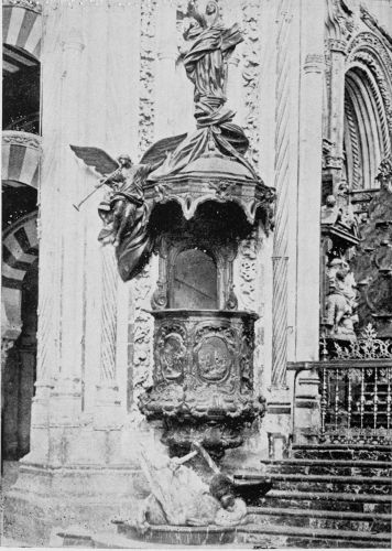 The Spaniard is not a passionate enthusiast of modernity. He is conservative, and zealous and proud of his ancient towns, and it is quite probable that the bulk of the natives of Cordova prefer that the atmosphere of the place shall remain mediæval. And we who resort to Cordova to reflect upon its past grandeur, and to imbue ourselves with the spirit of the Moorish days, are assuredly satisfied that it has not been modernised and marred during the years that have intervened between the great vandalism after the expulsion of the Arabs and the present time. We are glad to think that all which remains of majesty and beauty is now carefully cherished and respected.