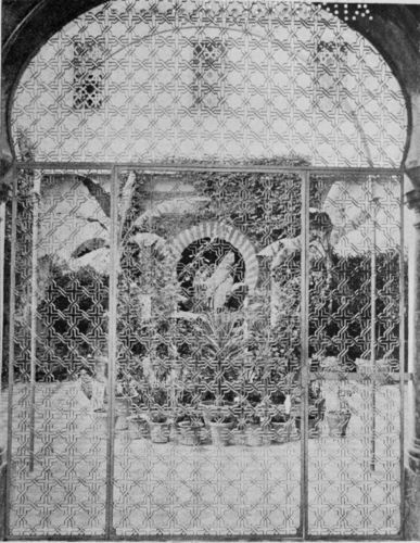 By these signs we learn to love Cordova as the sanctuary of learning and devotion rather than as the citadel of the valiant. It is essentially Oriental. Look at the streets—narrow, crooked, and shady, for, having no horse vehicles, the Arabs had no need for wider thoroughfares. The roofs of the houses project and screen the alleys from the sun. Cordova is clean and bright in contrast to Toledo. The streets are free from garbage; the interiors of the houses{7} are frequently cleansed, and flowers are grown by rich and poor. Fruits are cultivated in and around the town, and one may pluck the fig, orange, lemon, date, peach, plum, pomegranate, strawberry, and almond.
