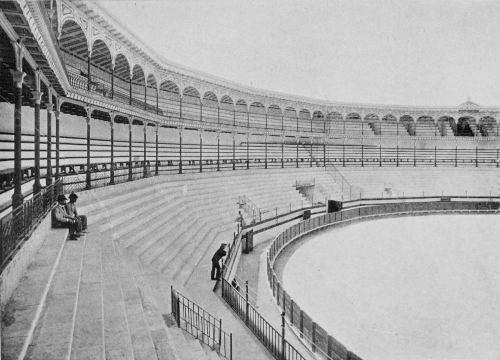 There are three principal hostelries—the Suiza and the Oriente are the visitors’ houses; but those who desire a purely Spanish environment may find quarters at the little Victoria, which has a very charming patio, gay with flowers. There are several good cafés. For amusement there is the Grand Teatro, a large house, in which we saw The Barber of Seville performed. There is, of course, a bull-ring, the Plaza de Toros of every town in Spain. The chief fights are held during the ferias of May and September.
