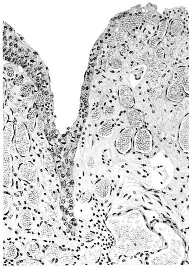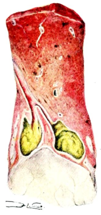 FIG. I. AUTOPSY NO. 99. ACUTE HEMORRHAGIC AND ULCERATIVE LARYNGOTRACHEITIS.