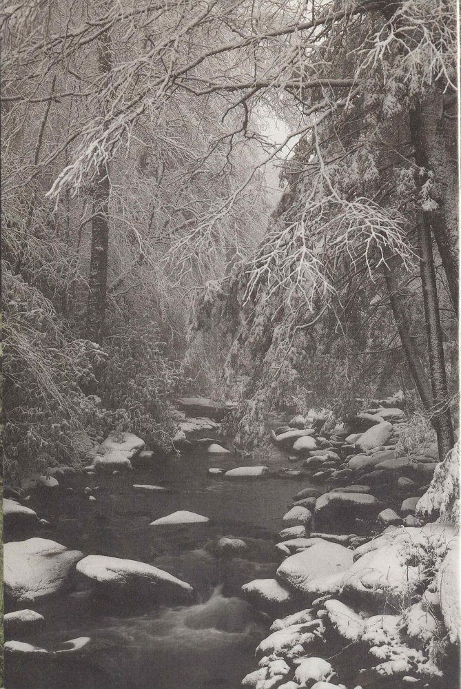 At one time no sharp edge separated two aspects of nature in the Great Smokies: man and the wilderness. Cherokee Indians lived here in ways ironically similar to those of the whites who would soon displace them. They cultivated crops, hunted, believed in one god, practiced a democratic form of government, and lived not in teepees but in mud-and-log structures. “The place of blue smoke,” Shaconage, they called this mountain hunting ground. And here amidst the haze lived also the spirit of their people; it, too, could not be divorced from the land itself. Treaty after treaty saw the Cherokees lose more and more homeland, up to and finally including the Smokies. In one of the great human tragedies that blots American history they were forcibly removed westward, “relocated” to Oklahoma via the “Trail of Tears.” One fourth of the people died along the way. A few Cherokees had resisted removal, staying behind in small groups and hiding out in the mountains. Troops could not relocate them because they couldn’t locate them. Later the Cherokees were allowed to return and reclaim the borders of their old homeland. They live there today on the Cherokee Reservation.