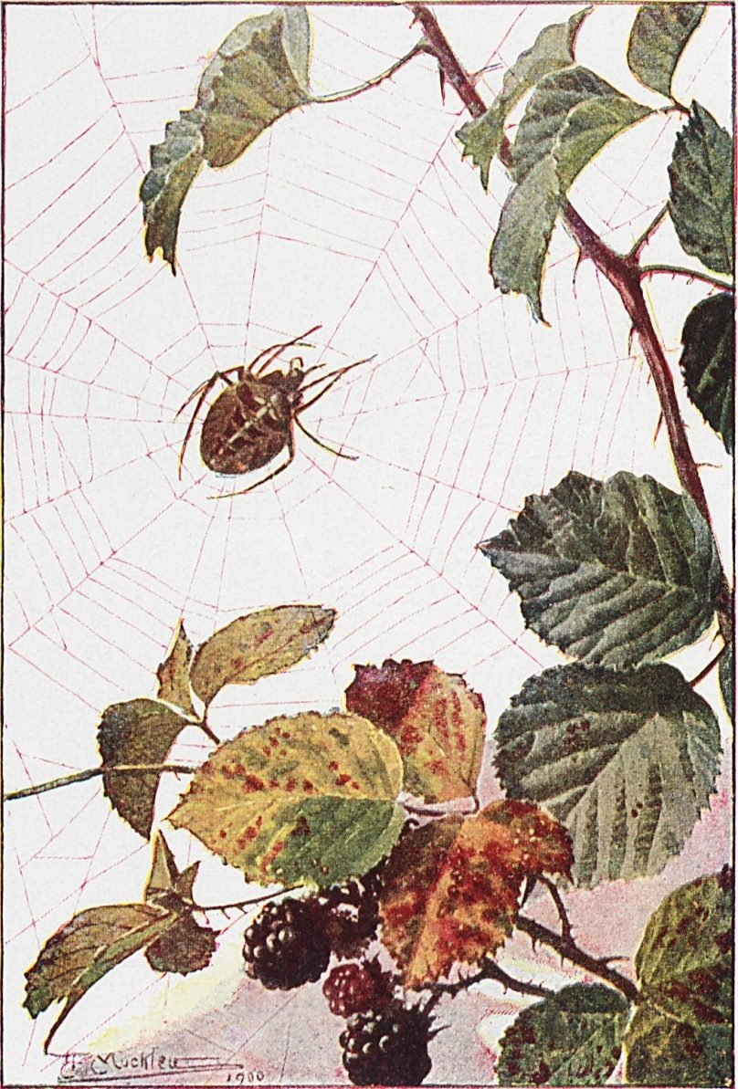 Wenn wir an einem schönen Sommermorgen über die Gemeindeweide gehen, sehen wir viele Spinnengewebe in der Sonne funkeln. Die Gespinste auf den Ginsterbüschen sind rund. Sie sind mit langen seidenen Fäden an den Stacheln des Ginsters befestigt, und jedes Gewebe hat Speichen wie ein Rad. Diese Speichen sind untereinander durch seidenartige Ringe verbunden. Die Ringe sind über und über mit klebrigen Tröpfchen bedeckt. Diese Tröpfchen sind es, die wie Diamanten funkeln und das Gewebe so hübsch machen.
