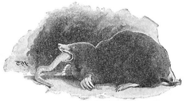 Wir hätten so gern den Bau eines Maulwurfs gesehen. Wir gruben tief in einen Maulwurfshügel hinein und hofften einen zu finden, aber wir trafen nur auf eine Röhre. Der Maulwurfsfänger lachte uns aus, als er uns dort graben sah. Er fragte uns, ob wir dächten, daß der Maulwurf einen Haufen loser Erde über seinen Bau aufhäufen werde, um seinen Feinden zu zeigen, wo er zu finden wäre.