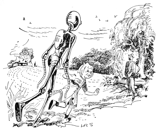 The robot was tall. The sun struck sparks from its steel carapace as it lumbered after the girl. Saxon stood frozen as she came flying towards him in a burst of tossing blond hair and laughter, as she saw him and came to a dead halt.