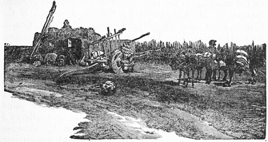 Roused by the taunt, Sitting Bull began fighting, and called to his friends to come to his help. One of these caught up a gun and added his shouts. The next minute the battle was on, and raged viciously for some minutes. The hostiles were twice as numerous as the police, and though the latter fought heroically, they quickly found themselves in serious danger. Several were shot down, and the outlook was doubtful, when one of them galloped to the top of the nearest hill and signalled to the cavalry, who dashed forward on a dead[243] run. A few minutes later, they opened with their Hotchkiss and Gatling guns and dispersed the hostiles.