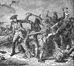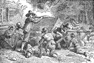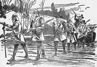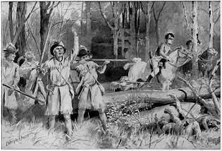In more than one instance a whole platoon fired at Osceola. The bark was seen to fly from the tree behind which he crouched, and once he was hit, but the wound was slight and did not bother him. Not until a squad of Americans were almost upon him, did he break for new cover, which he safely reached amid a storm of bullets whistling about him. The valor of the Americans saved them from a more fearful massacre than that of Major Dade's command.