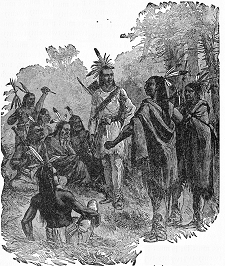 Keokuk was absent on a buffalo hunt when Black Hawk reached Fort Armstrong, but he and a number of his warriors came in the following day. It did not add to Black Hawk's peace of mind to see his rival's breast covered with medals presented to him by the people who had despoiled both. But Keokuk could afford to be genial, and when he saw the other he advanced toward him.