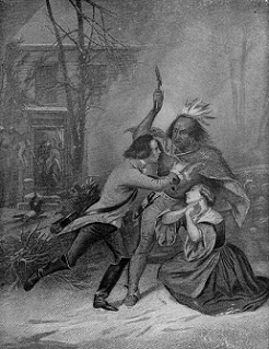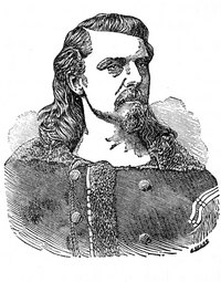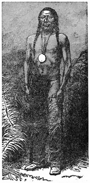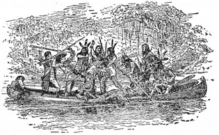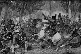 The famous mongrel was the head and front of the rebellion. A force of seven hundred men, while crossing the Ouithlacoochee River, were attacked by him, and in an hour's fight, the Americans suffered a loss of sixty-three killed and wounded, though they inflicted a greater loss upon their assailants. During this struggle, Osceola was recognized many times by the soldiers. He wore a red belt and several long, stained eagle feathers in his hair. He would stand behind a tree, while reloading his rifle, after which he would step out into full view and fire with a deliberate aim. He was seen to level his gun at General Clinch several times, but fortunately that officer, who rashly exposed himself, was unharmed, though his clothing was pierced by one of the bullets of the Seminole chieftain.