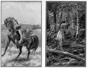 High hopes were felt of the success of this plan, but, to[231] the dismay of its authors, the canines having been trained to track negroes, refused to take the scent of an Indian. By urging, several were made to follow the scent, but the results were more discouraging than in the case of the others. The red men waited in the woods till the savage brutes came up to them, when they made friends with them and used the dogs to trail the owners themselves!