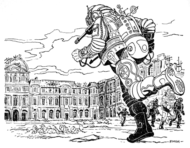 "Well, Julius was sure as hell a lot closer to the truth than those others," I tell him. We was sitting in the mud in what's left of some big building and me and Joe White was listening to Marty, our Sergeant, talking like he always does. When I says the sergeant was talking I mean he was talking over the C.C., the Company Communication Circuit because what with having our mecho-armor on and the other side raising a little hell, we couldn't of heard him any other way.
