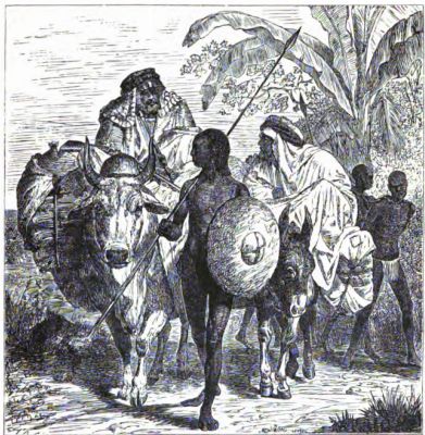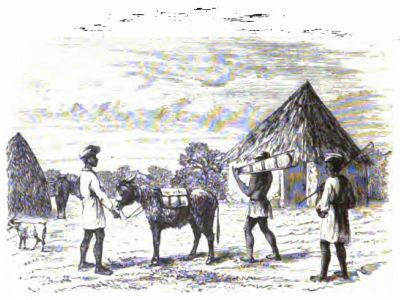 Several days were required for settling the affairs of the expedition, paying the pagazi, balancing accounts with Ahmed ibn Suleyman, their merchant companion; selling the donkeys, whose services were no longer needed; and disposing of their tents and other camp equipage which had served its purpose. What could not be sold was given away, and their faithful servants came in for a liberal share in the distribution. Frank was specially elated, on counting his tusks of ivory, to find that everything was all right, and he more than kept his promise to Mohammed and the porters. Fred grew sentimental over his donkey, and at their last interview the young gentleman was inclined to embrace the long-eared animal, but was restrained by the reflection that he might make a "donkey" of himself by so doing. However, he patted the brute affectionately, and expressed the hope that he would always have good masters and plenty of straw to eat.