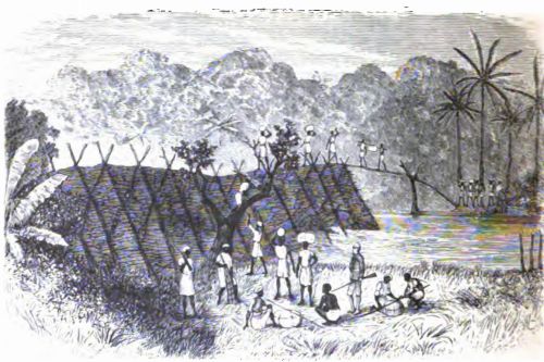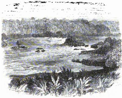 Frank suggested that it would be a good thing to have a troupe of trained monkeys to transport burdens across a stream of this sort. The imitative character of the monkey was well known, and perhaps he could be induced to copy the example of the negroes, and accompany the porters, with a burden suited to his size and strength.