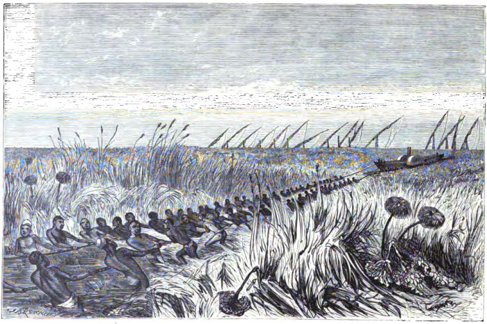One of the terrors of the road between Unyamyembe and Zanzibar is the Makata Swamp—a plain some forty miles wide, with the Makata River running through it. When dry there is no particular difficulty in crossing it, but in the season of rains it is a disagreeable expanse of mud, in which animals and men suffer greatly.