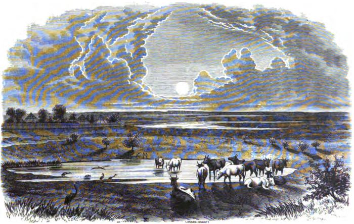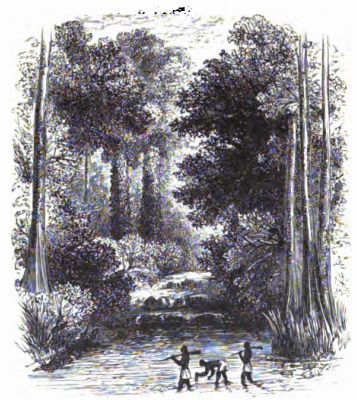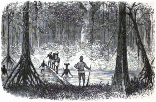 The result showed the wisdom of the Doctor's judgment, as it rained during the night, and the river rose so that the low banks on each side were flooded. But the day was fair; the heat again dried up the accumulated water, and the rest of the swamp was easily traversed.