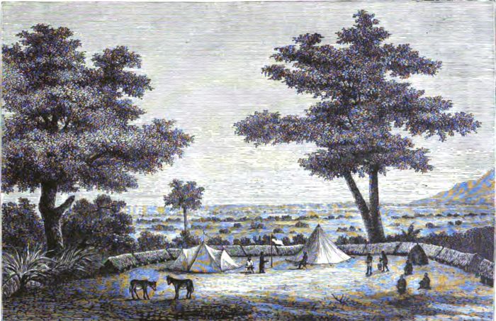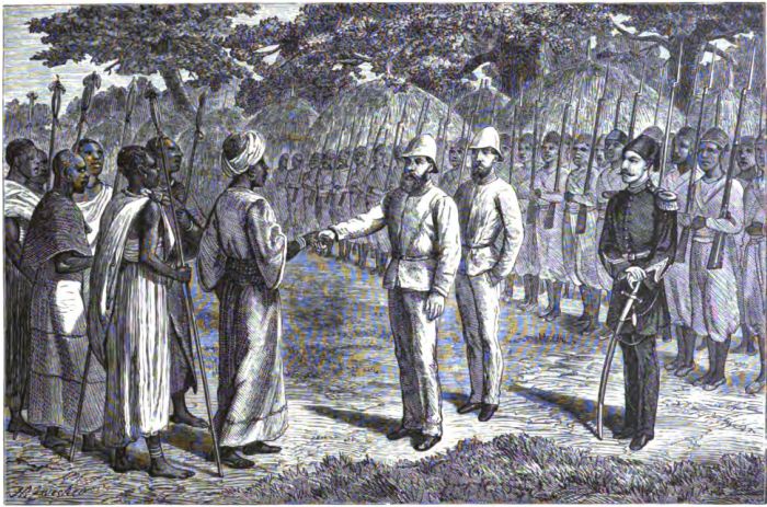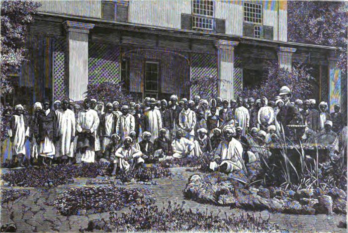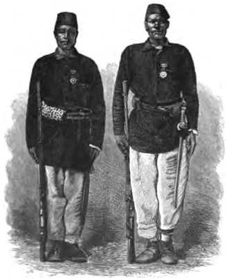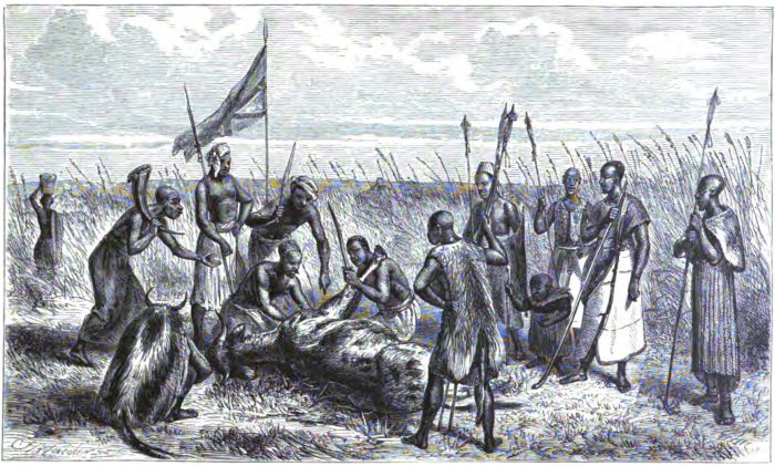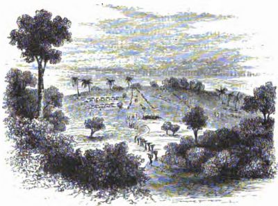 [5] Colonel Linant de Bellefonds remained several weeks at M'tesa's court, and then returned to Gondokoro, which he reached in safety. In the month of August of the same year, while on another expedition, he was massacred, with his entire party of thirty-six men, most of whom were of the original "Forty" that accompanied Baker in his Soudan campaign.