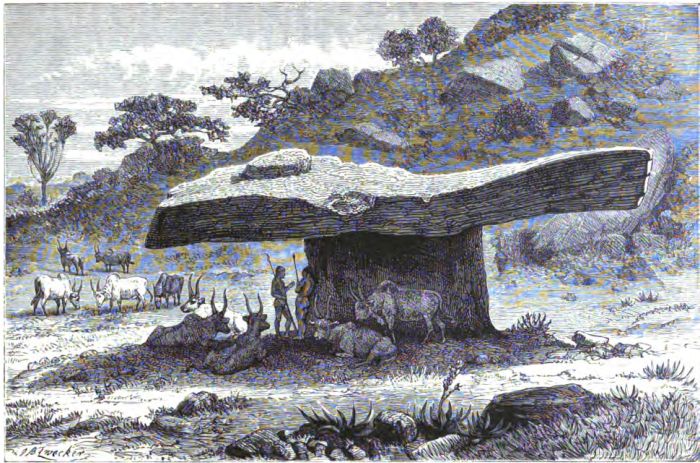 Many of the volumes consulted in the preparation of the book are named in the narrative, but circumstances made it inconvenient to refer to all. Among the volumes most freely used are the works of the following authors: Stanley's "Through the Dark Continent" and "Coomassie and Magdala;" Livingstone's "Travels and Researches in South Africa," "Expedition to the Zambesi," and "Last Journals;" Schweinfurth's "The Heart of Africa" (two volumes); Barth's "Discoveries in North and Central Africa" (three volumes); Speke's "Journal of the Discovery of the Source of the Nile;" Burton's "The Lake Regions of Central Africa;" Long's "Central Africa;" Baker's "The Nile Tributaries of Abyssinia" and "Ismailïa;" Reade's "Savage Africa;" Bourne's "African Discovery and Adventure" (two volumes); Wilson's "Western Africa;" Baldwin's "Hunting in South Africa;" Cumming's "A Hunter's Life in Africa;" Silver's "Hand-book to South Africa;" Cameron's "Across Africa;" Serpa-Pinto's "Comment J'ai Traversé L'Afrique" (two volumes); Du Chaillu's "Equatorial Africa," "Ashango Land," "Wild Life Under the Equator," "My Apingi Kingdom," and "Lost in the Jungle;" Anderson's "Lake Ngami;" and lastly, several authors whose narratives have appeared in Le Tour du Monde. The publishers have kindly allowed the use of illustrations which have appeared in previous volumes relating to the African continent, in addition to those specially prepared for this work. The maps in the front and rear covers were drawn from the best authorities, and are intended to embody all recent discoveries.