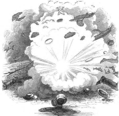 "Certainly that might happen," was the reply, "and we can guard against it by having a few dozens of steel shells made like the copper ones, and with nipples for ordinary percussion-caps. These shells can be reloaded many times. We can carry powder in tin canisters, caps in boxes, and moulds for casting bullets, and then, with a few bars of lead in our possession, we shall be independent of fixed ammunition from the factories.