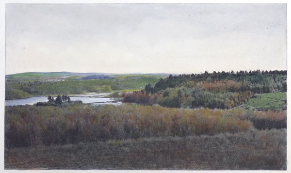 In all my rambles I have seen no landscape which can make me forget Fair Haven. I still sit on its Cliff in a new spring day, and look over the awakening woods and the river, and hear the new birds sing, with the same delight as ever. It is as sweet a mystery to me as ever, what this world is. Fair Haven Lake in the south, with its pine-covered island and its meadows, the hickories putting out fresh young yellowish leaves, and the oaks light-grayish ones, while the oven-bird thrums his sawyer-like strain, and the chewink rustles through the 10 dry leaves or repeats his jingle on a tree-top, and the wood thrush, the genius of the wood, whistles for the first time his clear and thrilling strain,—it sounds as it did the first time I heard it. The sight of these budding woods intoxicates me,—this diet drink.