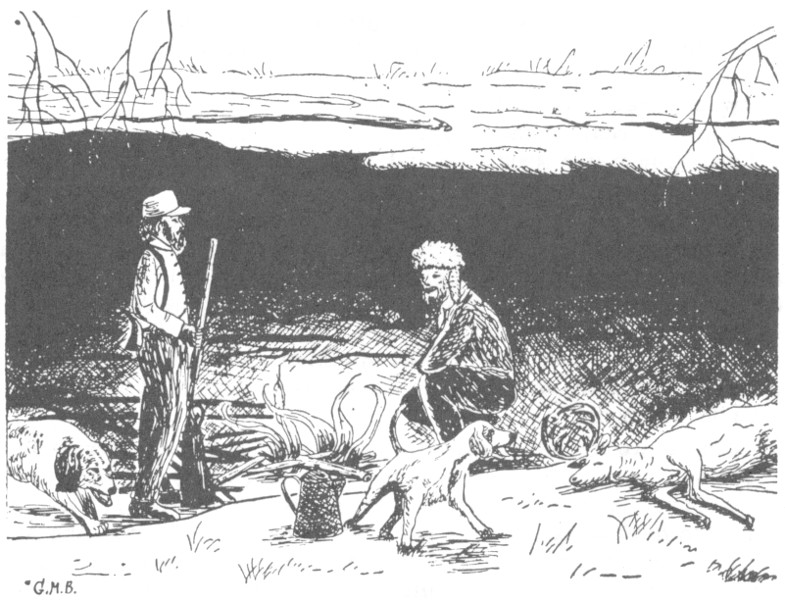 On the morning of the day set for the trial, men began arriving early on foot, horseback and in wagons. Some of them brought their dogs and guns, hunting along the way. They hung their game in trees at the edge of the paw paw patch and stacked their guns, as the Squire ordered, in a corner of the rock shelter. A hillbilly minstrel was in the crowd with his guitar and he sang old ballads to entertain the men before court “took up.” Even during the trial the judge would frequently declare a recess and call on the ballad singer to give his version of “Barbara Allen” or “The Butcher Boy.”