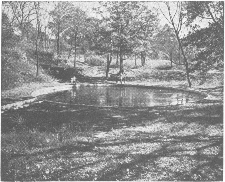 The pioneers saw economic possibilities in this vast flow of water and built a dam a few hundred yards below the spring near where the spring branch enters White River. A flouring and saw mill, operated by a turbine, was built on that spot. But the mill is now gone and only the turbine remains. Plans were once made to pipe the 61 water to the railroad some three miles away and ship it for drinking purposes. No analysis of the water is available, but it is said to be soft and pure.