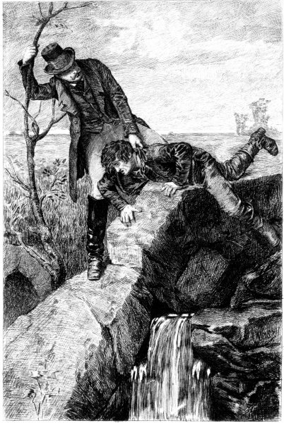 A cet appel impératif, le menuisier hésita un instant entre l’émotion dont il ne pouvait se défendre et la honte de fuir devant un homme seul, en présence d’un témoin; à la fin ce dernier sentiment l’emporta. Il revint sans dire un mot jusqu’au bord du chemin, où il se posa d’une manière [Pg 12] assez insolente en face du baron, le chapeau enfoncé sur l’oreille, et serrant par précaution le bâton noueux qui lui servait d’arme.