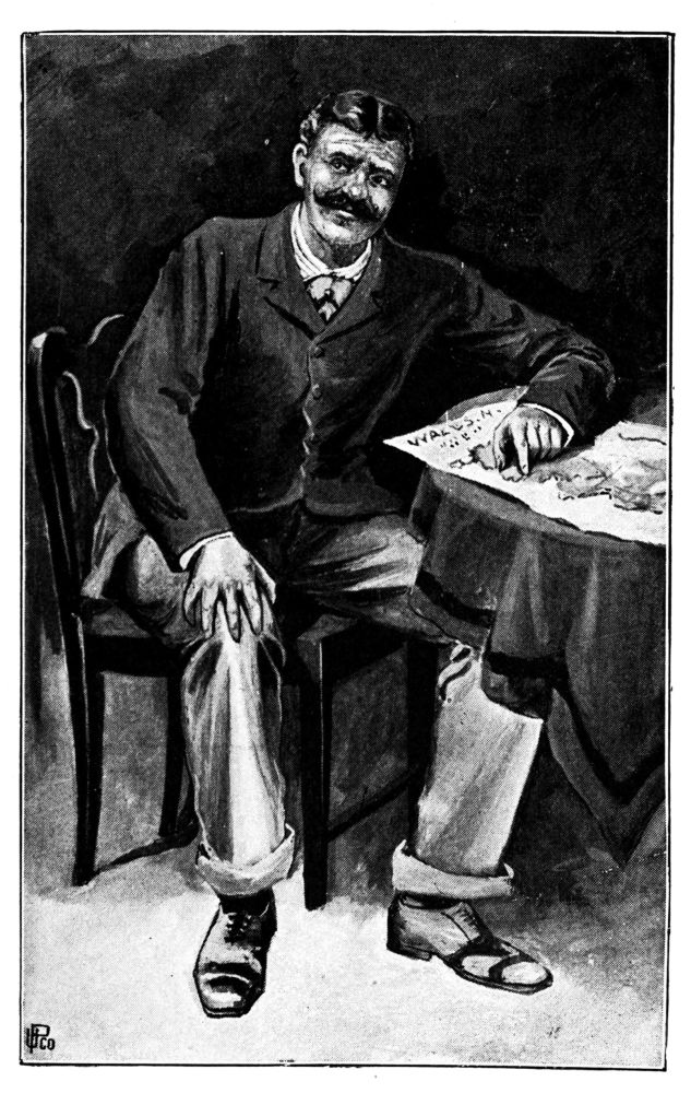 “I thought I was goin’ to be all alone up here to-night,” said a voice from behind the eye-glasses—a voice of that class which, like Scott’s poetry, “scorns to be obscure,” and proclaims its natal Brixton in clarion tones. “I’ve bin kicking my ’eels up ’ere since five o’clock, and I cawn’t say it’s bin lively!” The speaker permitted to himself a dramatic yawn, followed by a giggle of{111}