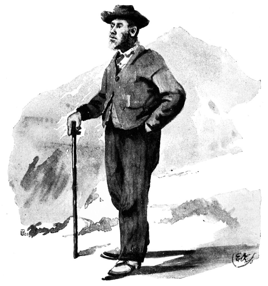 O’Flannigan ranged forth through the sleeping house to call the chambermaid, or when at 7.15 the underdone poached eggs and the chill phantom of yesterday’s coffee were achieved by the cook in some favourable interval of her toilet. Nor, by the time that we had arranged ourselves upon the Tommies, was the coolness so striking as we could have wished, except in the representative of the landladies, with whom we had had occasion to discuss the bill. This matter caused an awkwardness in our usually effective farewells—so much so that we felt constrained to start at full gallop, and to keep up the pace till we believed ourselves out of sight of the group at the hotel door. The Tommies shied as though before that hour they had never looked on the things of earth, and the firry flank of the Moel Dinas had not intervened when Miss O’Flannigan’s hair came down and the strap of my hold-all had burst. A more determined effort than usual on Tommy’s part to go home placed me for a moment facing the Griffith Arms,—a glimpse worth gathering, dis{54}covering as it did the fact that the unexplained guests of the hotel, in varied and immature costumes, were exulting at every upper window, and that from the window of the apartment that had so recently been ours—the room that we had been told belonged to Mr Willy Griffith—waved the white beard of the old man of the bridge and the church. Was he Mr Willy Griffith?