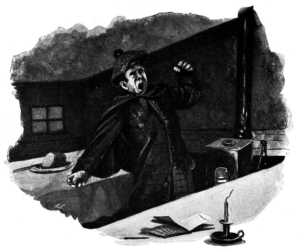 We lay, silent as stones, listening intently. The footstep paused at our door, but relenting, passed on without knocking. Presently we heard the newspaper-man go forth like the dove from the ark, and, after a similarly brief absence, return, and settle himself down in the saloon, where, faithful to the interests of the ‘Brixton Chanticleer,’ he no doubt occupied himself in recording his impressions of the mist. For the sake of our self-respect we rose and looked out of the window—a shuddering glance which scarcely revealed to us the foggy outlines of the other shanty and the cairn of stones.