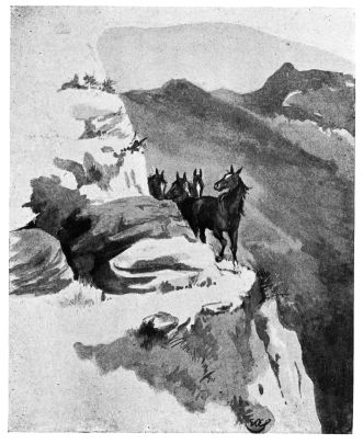 No eyes but those of the aghast, black-faced sheep and the coldly interested carrion-crows witnessed the occurrence, or the subsequent procession upwards, over slippery grass and through the boundless quagmires caused by a stream that seemed newly spilled on the face of the hill, and was still wandering in search of a bed. The hut on the top of Snowdon was visible—an angular{131} atom, retaining even, as a silhouette of the eighth of an inch square, its air of gamin self-sufficiency and adequacy for its position of overseer to England and Wales. With the aid of field-glasses, it and its inmates might have come to the conclusion that two aproned and gaitered Deans of the Church of England were leading a pair of heavy-laden sumpter-palfreys over the pass to Llanberis, or might eventually have made the discovery that the most simple manner of adapting a riding-habit to mountain walks is not necessarily the most graceful.