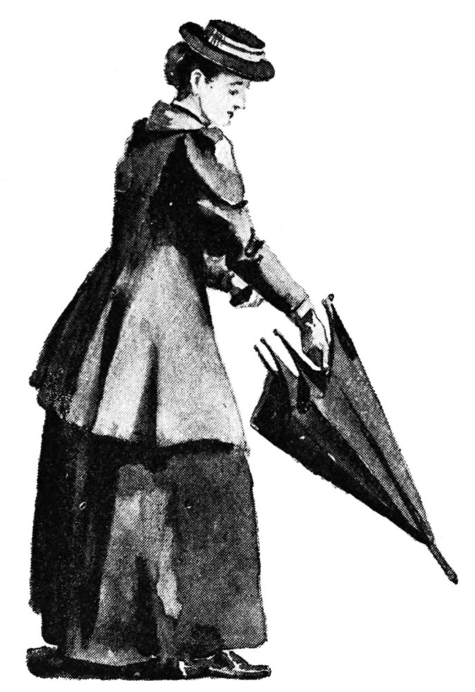 As has been insinuated, it was a wet day, and for some time I feared that my influence over Miss O’Flannigan was not sufficient to dissuade her from purchasing a species of pall, made of black painted canvas, and worn as a cape by “the common quarrymen,” as she was coldly told by the lady behind the counter. The further information, however, that its price was seven and elevenpence,{141} caused her to lay it longingly down and ask for an umbrella—“A very bad umbrella,” she explained; “the worst kind you have got——”