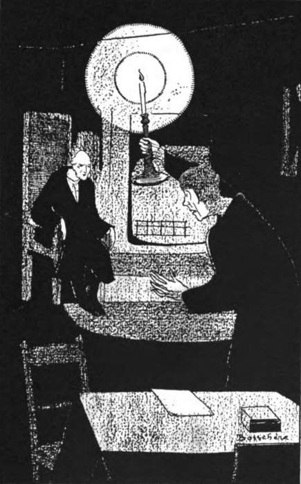 And Mr. Spalding found himself in a white-washed room, scantily furnished with three rows of bookshelves, a writing-table, a table set with mysterious instruments, and two chairs. A shaded lamp on the writing-table gave light. Mr. Spalding had left the umbrella pine country blazing with sunlight, but it seemed that Kant’s time was somewhere about ten o’clock at night. The large window was bared to a dark-blue sky of stars.