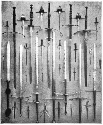 There are often great difficulties in the way of reasonably approximating the date and nationality of both weapons and armour, owing to causes which will be touched upon later in these pages; but these apparent inconsistencies must needs be grappled with as far as possible, and herein lies the work of the archæologist. In the case of sword specimens, it very often happens that blades and hilts belong to widely different periods, and even nationalities, and cases of this kind often give rise to much doubt and perplexity; indeed, unless there is evidence that a blade and hilt are contemporaneous, it is always well to consider that they may not be so; for blades were passed down from father to son, and often re-hilted more than once. Hilts also were often re-bladed.
