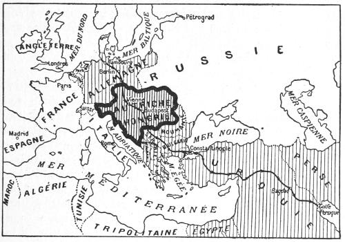 To recapitulate, a series of deductions, all based on acknowledged facts and all easily verifiable, leads to the conclusion that the formidable problem with which German aggression has confronted the civilized world is summed up in the solution of the Austro-Hungarian question, because that solution, which can be worked out without prejudice to the legitimate interests of the German people (see Chapter VI § 111), is the only means of putting an[235] end to the Hohenzollern plan of universal domination, founded on the scheme “from Hamburg to the Persian Gulf.”