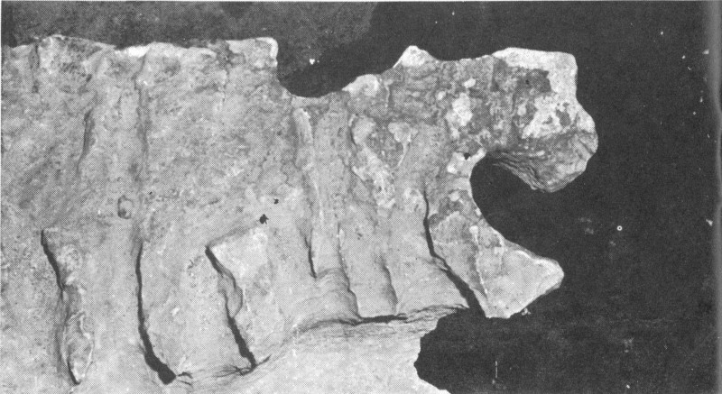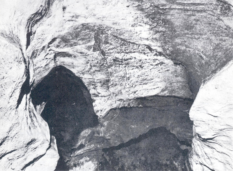 A word about the River Styx. Above it in several places you can see very smooth walls left by the familiar erosive action of a stream. (See illustration page 14). Most of the cave walls show the more pitted, concave surface left by the acidic dissolving action of phreatic water. The water which produced the main cave system moved much slower than the River Styx, and over a wider area. The stream as we see it did not produce the cave. Rather, the caverns, when drained, left a free flowing course for ground water to channel into. The only true underground streams occur in caves. They are a by-product of the cave-forming process.