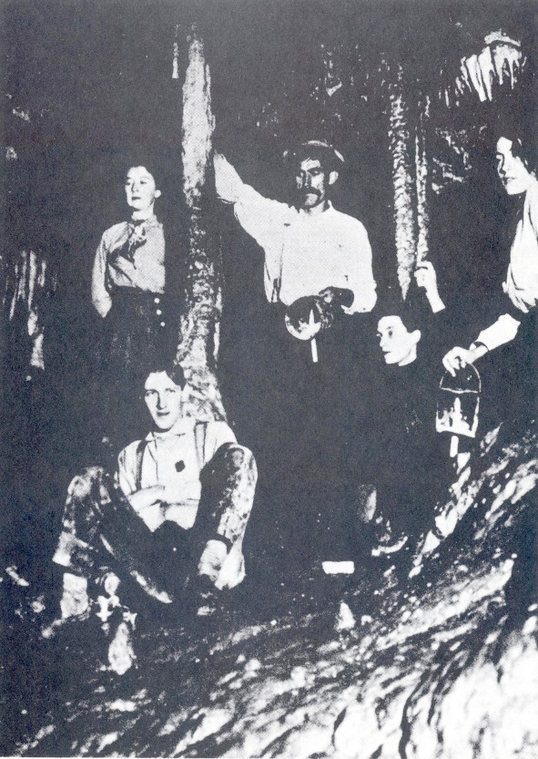 Natural things and natural processes are paramount. Manmade facilities such as trails, lights and steps are necessary to allow visitors to enjoy the cave. But they are kept at a minimum. Your guide will ask you not to touch any of the cave formations. This is to keep them from being stained or broken. Prior to the establishment of the National Monument in 1909, fragile formations were the object of severe vandalism and thoughtless destruction by souvenir hunters (see illustration page 33). It is doubly important to preserve the remaining features for the benefit of those who will come here tomorrow and in later years.