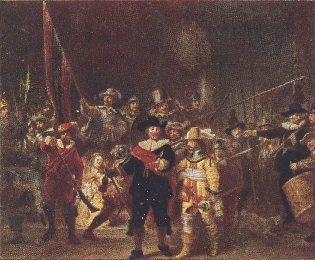 Die Natürlichkeit ist nicht die billige, die der Zufall gibt, sondern die künstlerische, die aus vollkommener Herrschaft über die Erscheinung folgt. Es ist unter den Figuren keine, die man stellen kann. Sie sind nicht auf den Beschauer gerichtet, sie stehen und gehen unbelauscht für sich. Sie sind der Wirklichkeit, dem Moment abgestohlen. Und weil sie so dem Maler ganz gehören, weil er[S. 333] nicht diese zehn oder zwanzig Stellungen abgezeichnet hat, sondern Hunderte sich zu eigen gemacht, deshalb kann er sie in das Bild stellen, wie das Bild sie braucht. Und deshalb ist jede Figur voller Ausdruck, neu und überraschend. Was für eine Vielbewegtheit ist in der Frau des Vordergrundes, die schreitet und trägt und sich gegen den Wind zu behaupten hat!