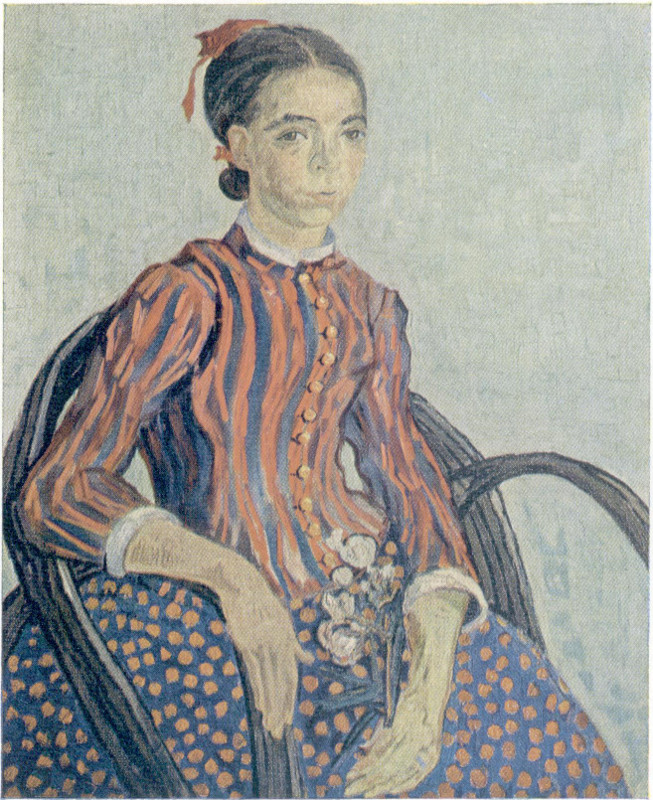 Loving the delicacy of Japanese art and having read about Japan, van Gogh named this young girl a “mousmé.” The word was taken from a romantic novel by Pierre Loti, who used it in describing the charm of the young Japanese tea-house attendants. Actually this subject was a peasant of Provence, in southern France. Van Gogh went there in 1888 hoping to capture in its bright sunshine some of the beauty he imagined in Japan.